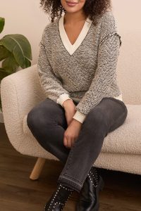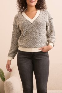 Elevate your wardrobe with the Tribal Cream V-Neck Top featuring subtle rib detailing. Its flattering V-neckline and soft cream fabric offer effortless elegance perfect for day-to-night styling. Comfortable and versatile, this top pairs beautifully with jeans or skirts for a refined yet relaxed look.